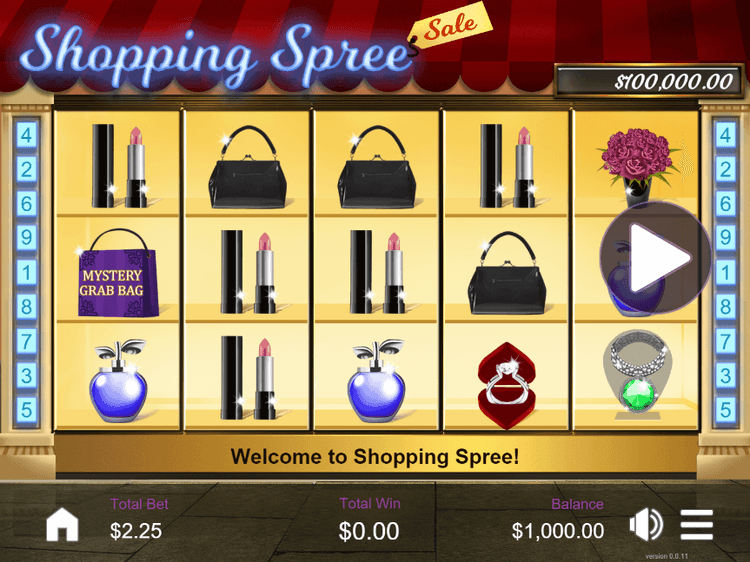 Collect High Heels, Perfume, Handbags, and other high-end accessories on the nine paylines of Shopping Spree to go home with a shopping bag full of cash.